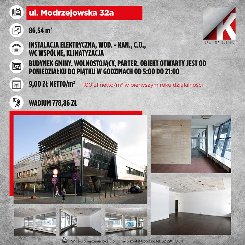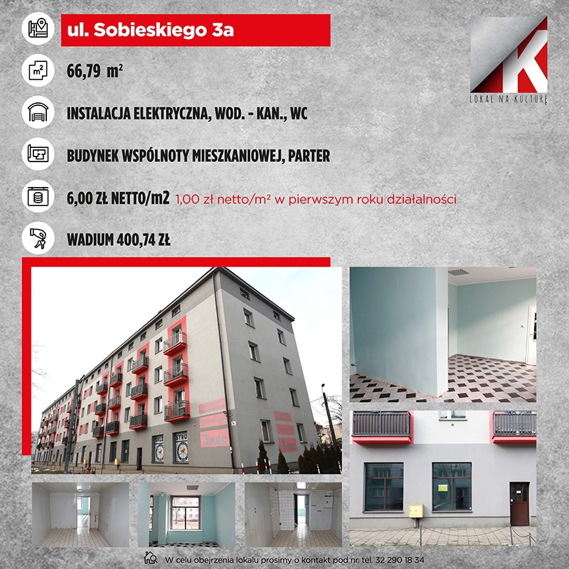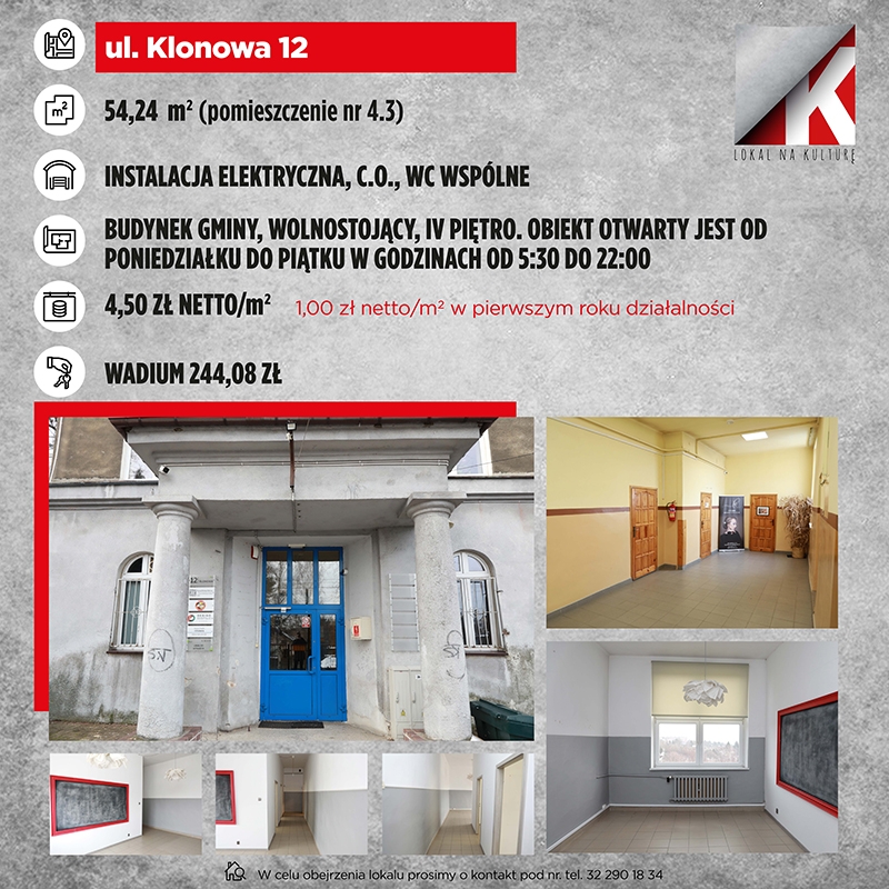 Oferty można składać do 20 kwietnia 2026 r. Specjalny formularz należy złożyć w tym terminie osobiście lub pocztą. Osobiście oferty należy składać w zamkniętej kopercie z dopiskiem „Lokal na kulturę – Nie otwierać” oraz adresem lokalu, którego oferta dotyczy w Urzędzie Miejskim w Sosnowcu (Wydział Kultury i Promocji Miasta, al. Zwycięstwa 20, IV piętro, pokój 503B, w godzinach pracy, czyli w poniedziałki 7.30-18.00, od wtorku do czwartku od 7.30 do 15.30, w piątki od 7.30 do 13.00), a pocztą na adres: Urząd Miejski w Sosnowcu, Wydział Kultury i Promocji Miasta, al. Zwycięstwa 20, 41-200 Sosnowiec, z adnotacją na kopercie: „Lokal na kulturę – Nie otwierać” (decyduje data stempla pocztowego).